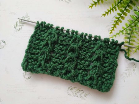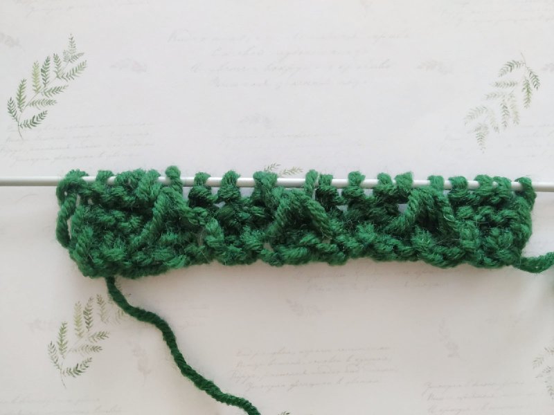 Все. Раппорт узора в высоту провязан. Далее просто повторяем все с первого до четвертого ряда.