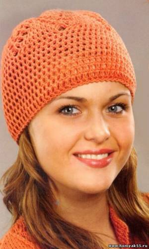 Начните вязать по схеме. Затем следующие 9 рядов вяжите так: столбик с накидом, воздушная петля, столбик с накидом. Края шапочки обвяжите «рачьим шагом».Если заменить пряжу на хлопок - то получится замечательная летняя модель. Удачного вязания!