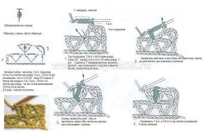 Принцип вязания витого столбика: при наборе витка на крючок поднимайте каждый каждый виток средним пальцем правой руки к месту соединения крючка и ручки, пока не будут выполнены все витки. После этого выполняйте остальные этапы вязания этого столбика.