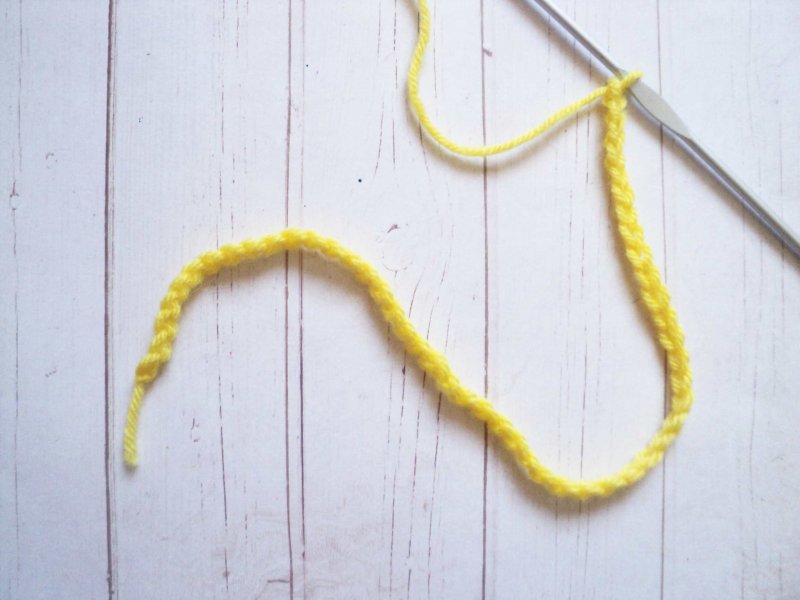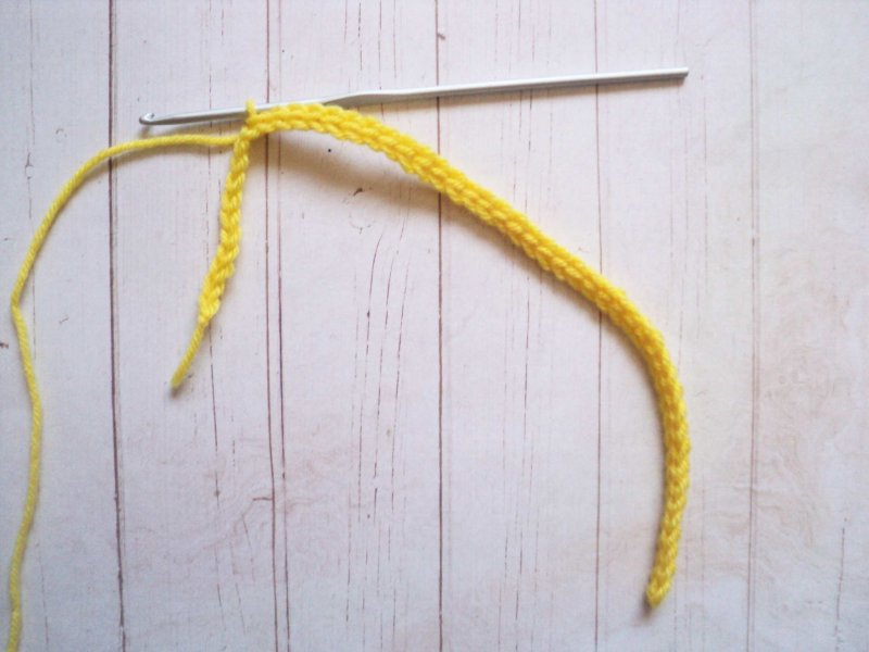 Теперь вяжем ряд соединительными столбиками. И до конца цепочки не довязываем 10 петелек. Они на нужны для формирования макушки.