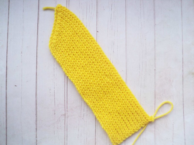 Теперь снова не будем довязывать до конца макушки 10 петель и все остальное вяжем аналогично. В итоге мы провяжем уже 2 клина.