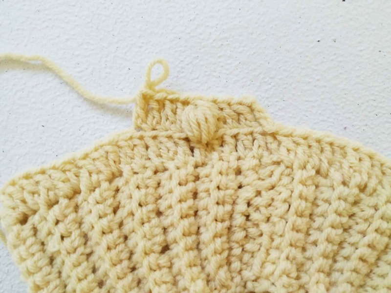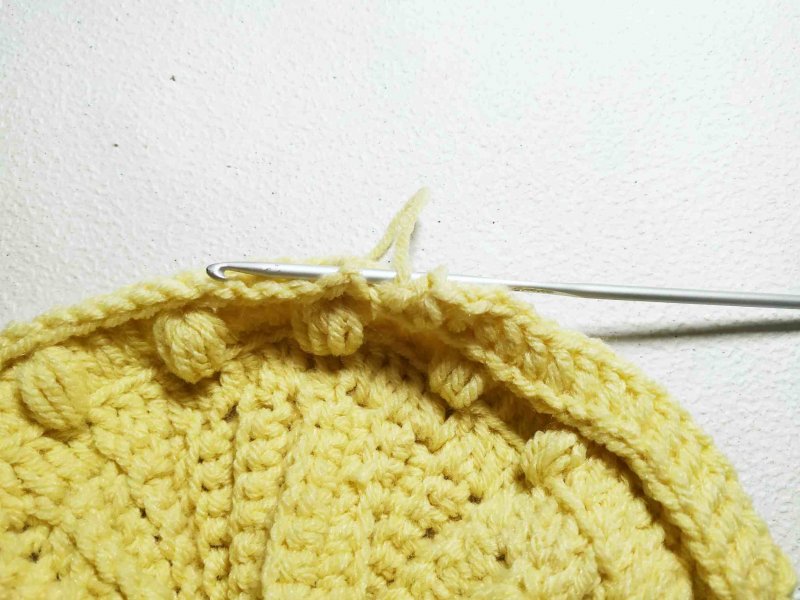 В ряду столб. с нак. убавки сделать через каждые 3 петли. Ряд пышных столбиков связать, как и ранее.