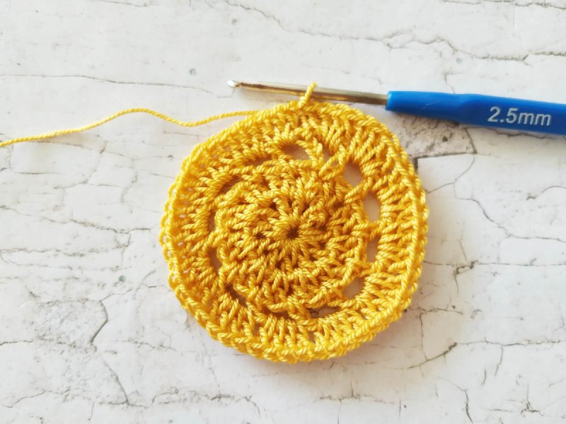 Свяжем еще раз. Сначала ряд с арками. То есть, 1 ст\с1нак, 2 воздушные петли и 1 ст\с1нак между 2 и 3 ст\с1нак. А затем ряд с 3 ст\с1нак в каждую арку.