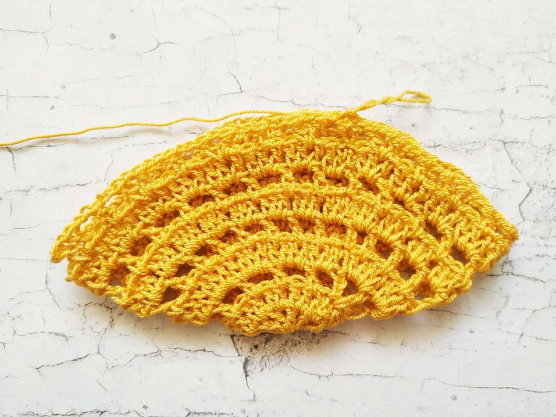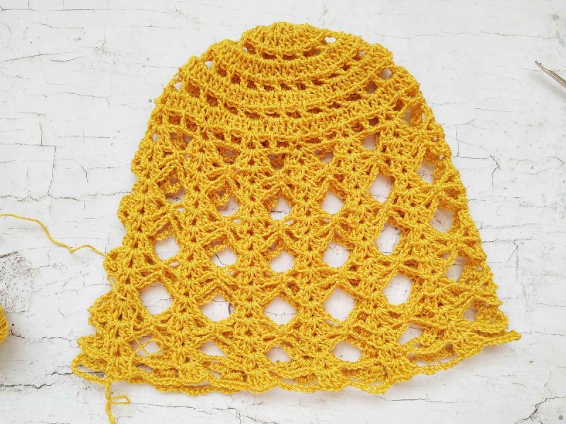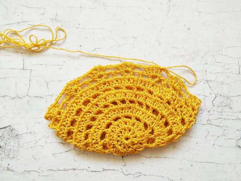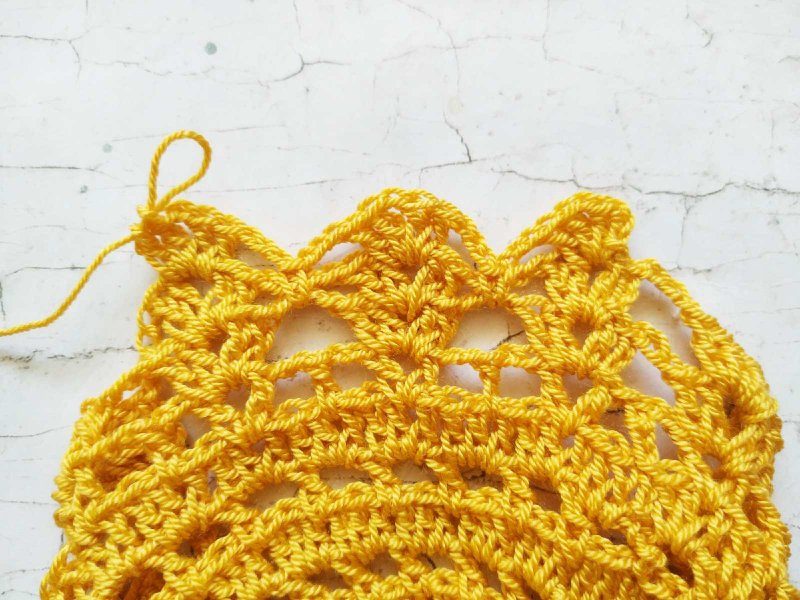 Закончить вязание лучше рядом, который объединяет 2 цепочки нижних рядов.
