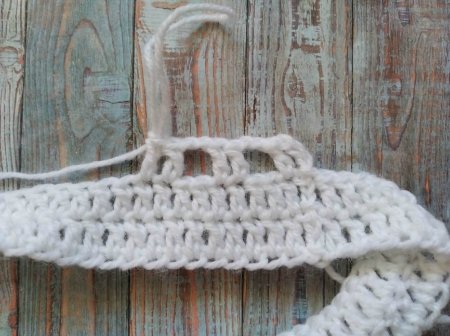 Во всех следующих рядах провязываем по 2 Ст СН вместе.