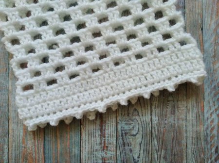 Теперь у нас есть окошечки благодаря 2 ВП между столбиками. И в них будем вязать по 2 Ст СН. Затем будем делать 2 ВП и пропускать снизу в основании 2 столбика, а под ВП снова будем провязывать 2 Ст СН.