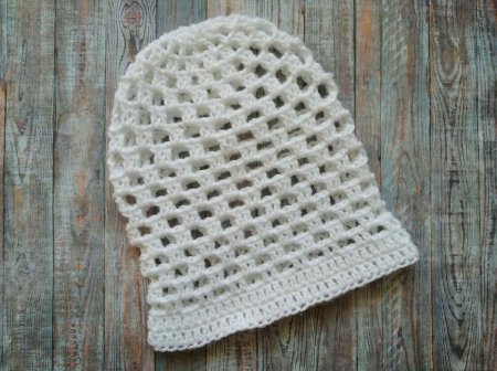 Раппорт узора составляет 4 петельки. Набираем воздушную цепочку, ориентируясь на раппорт и обхват головы. Соединяем в круг цепочку и приступаем к вязанию.