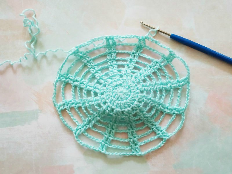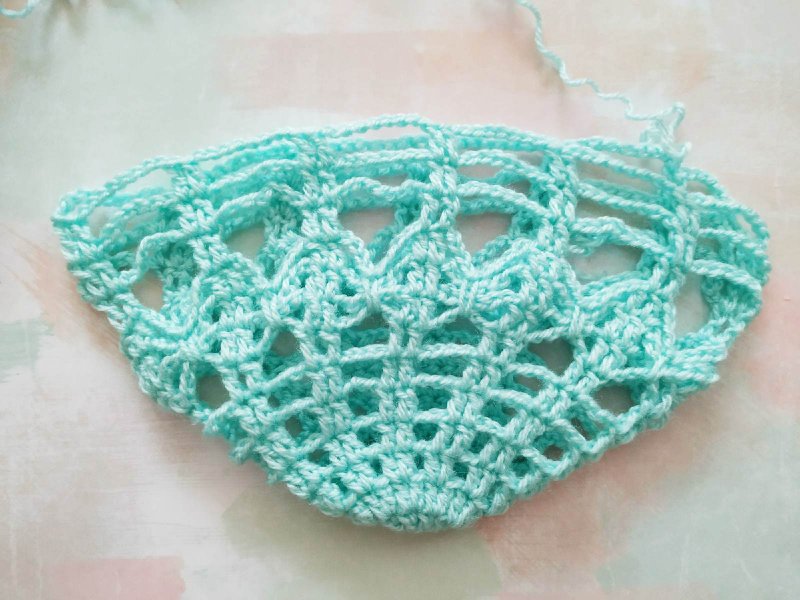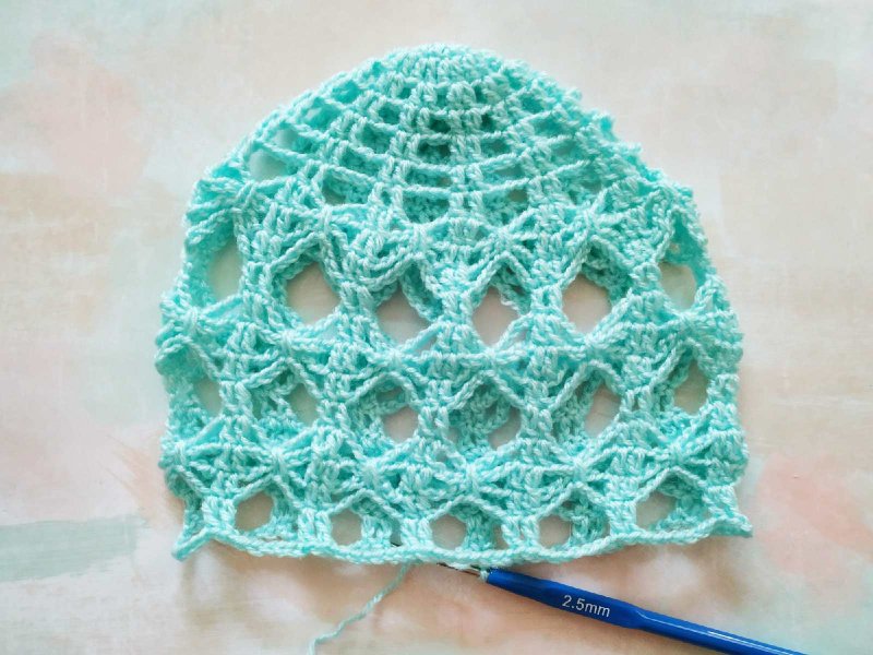 Вся макушка вяжется по этому принципу. То есть в каждом новом ряду только увеличивается количество воздушных петелек между ст\с\накидом. В итоге лучше, если их будет нечетное количество.