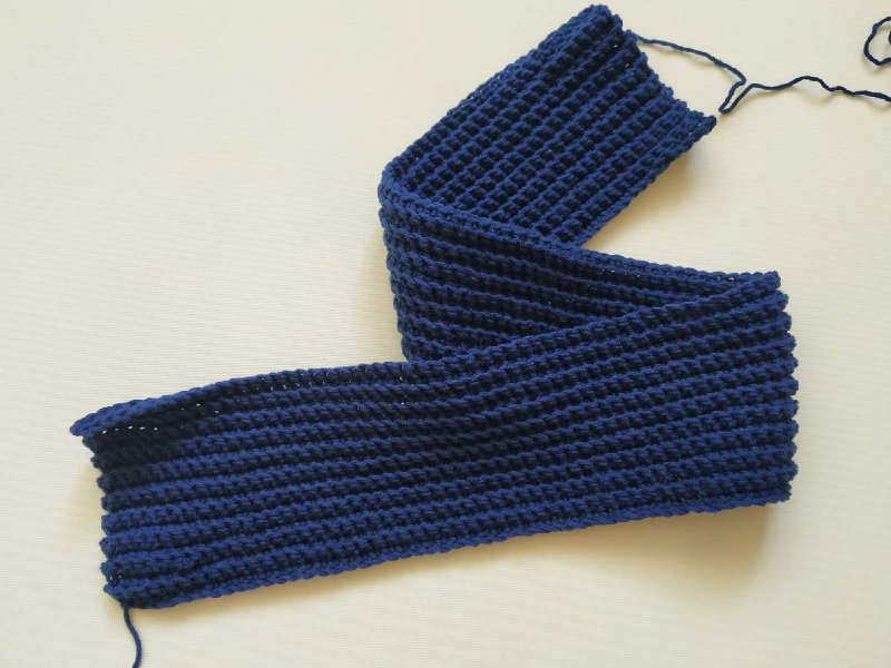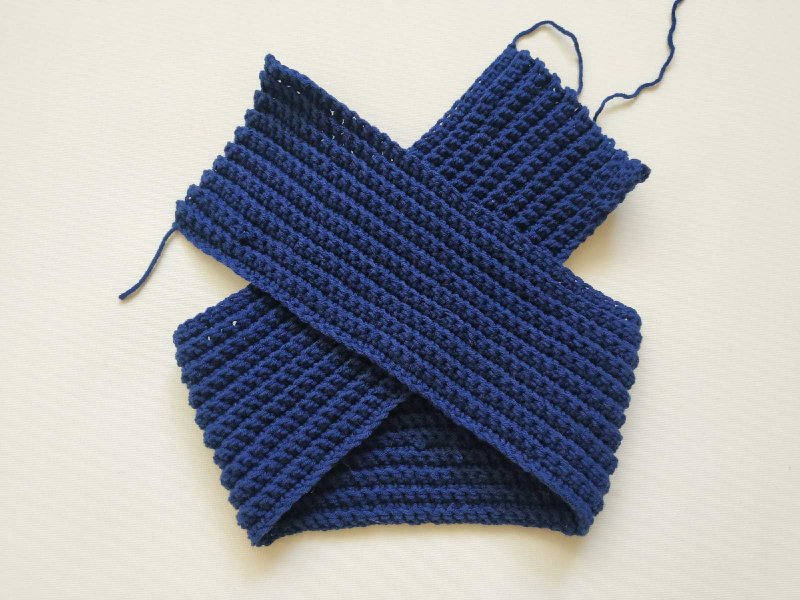 Переворачиваем все это. И теперь подгибаем кончики к горизонтальной стороне шарфика.