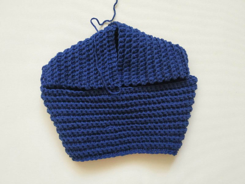 И теперь делаем шов по горизонтали, пришивая концы шарфа. Затем делаем шов вертикальный, сшивая стороны шарфика. Теперь шапочка не распадется.