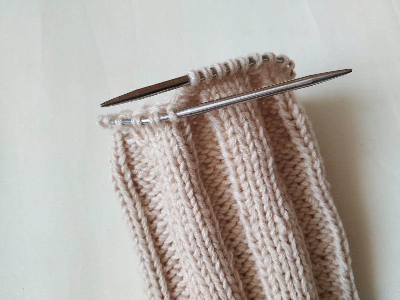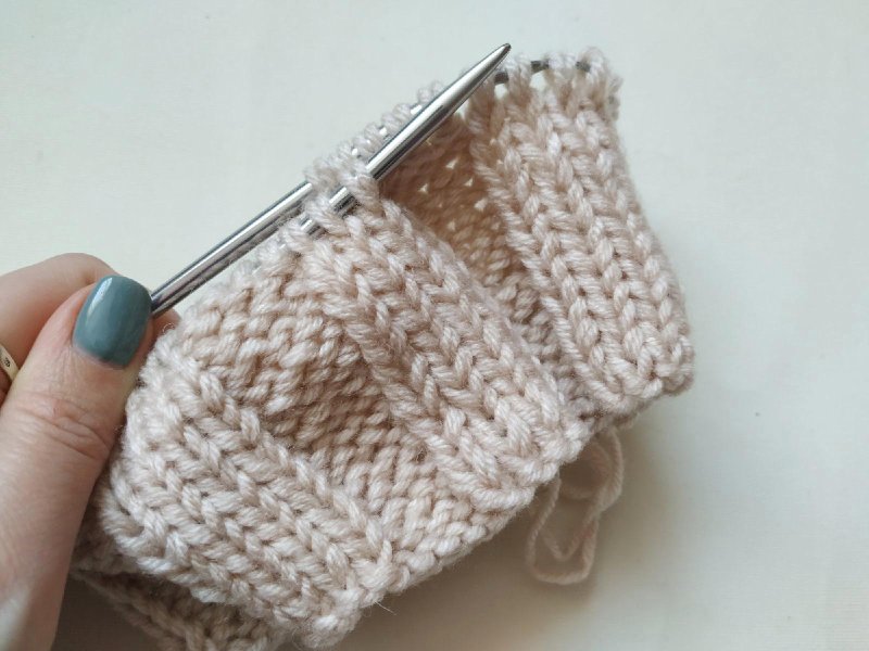 Провязываем 1 ряд, выполняя 4 лицевых петель, затем 4 изнаночных. Далее повторяем этот раппорт до конца ряда.