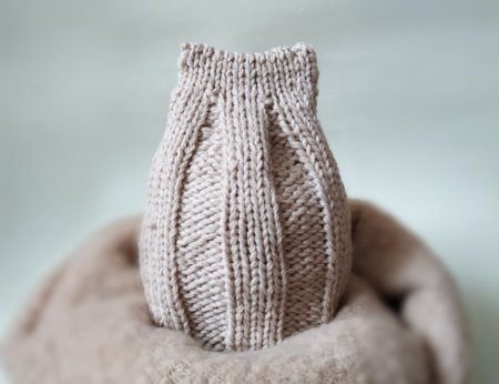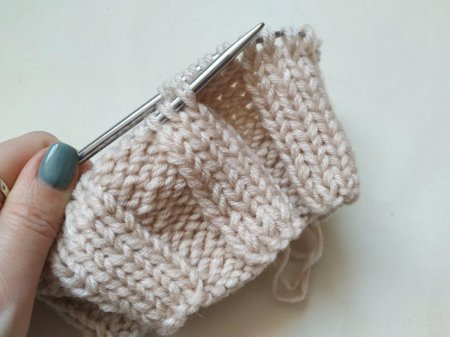 Дальше вынимаем спицы и сшиваем 2 части невидимым трикотажным швом.