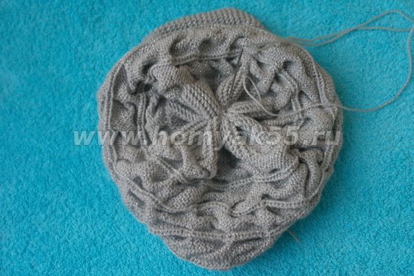 Верх шапки присобираем на нитку и аккуратно стягиваем. Сшиваем донышко.
