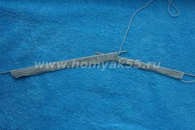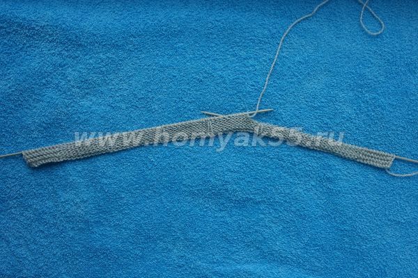 1 ряд – 1 кромочная, 10 лицевых за переднюю стенку, * 12 лицевых за заднюю стенку, 1 изнаночная, * повторить от (*) 4 раза, 12 лицевых за заднюю стенку, 10 лицевых за переднюю стенку, 1 кромочная.