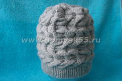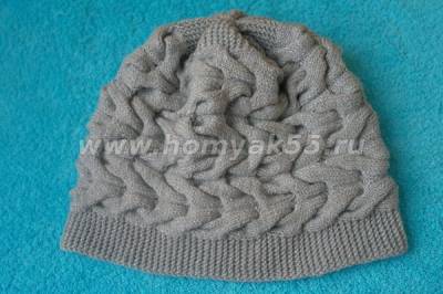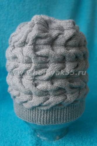 Шапка с косами, вязанная поперечным полотном. Мастер-класс