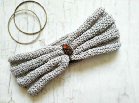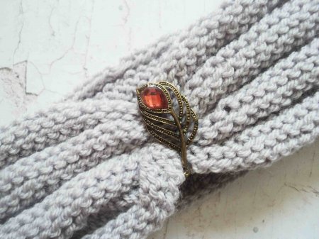 Повязка связана и теперь лишь остается ее украсить красивой крупной брошкой. Можно также ее не украшать, а оставить так, как есть.