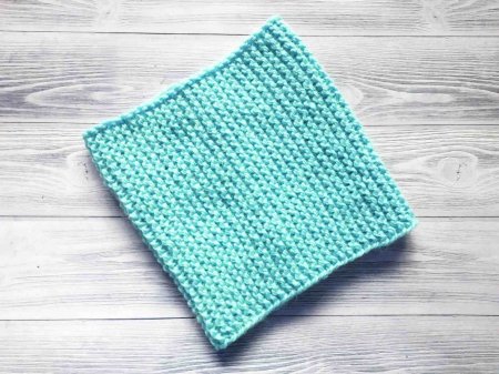 Для снуда нужно 2 моточка. Набираем 30 петель и вяжем все ряды платочной вязкой. Извязать нужно оба моточка. Закрываем петельки и сшиваем с одной стороны.