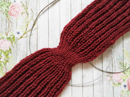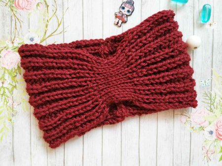 Закрываем петли. И просто сшиваем 2 стороны повязки. Выворачиваем повязку на лицевую сторону. Повязка спицами готова!