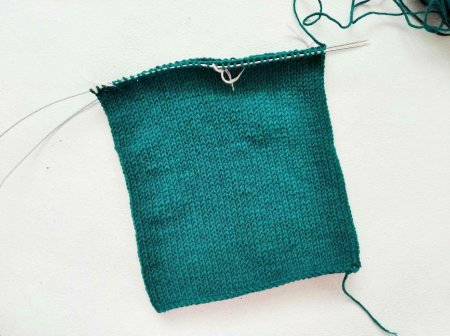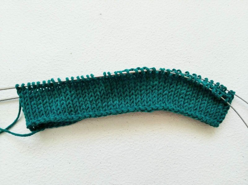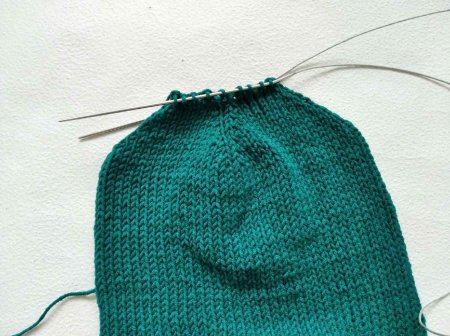 И далее начинаем вязать шапку. Вязать ее мы будем лицевой гладью и, так как она вяжется по кругу, то все петли в каждом ряду будут лицевыми.