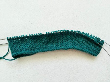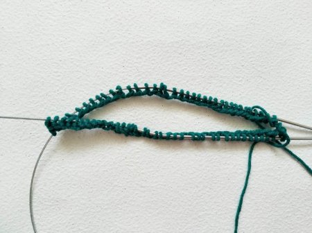 И так будем вязать, пока на спицах не останется совсем небольшое количество петелек.