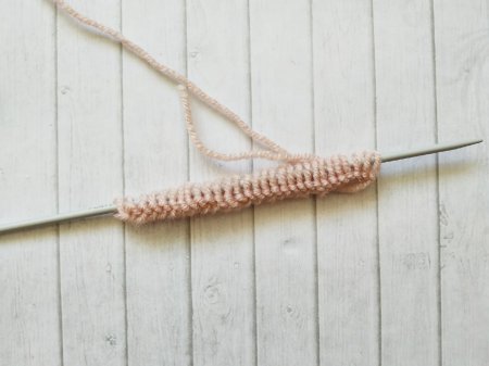 Повязка получится объемной за счет провязывания петель с 2 витками.