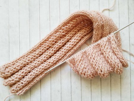 Для такой повязки набираем количество петель кратное 8 и плюс 2 кромочные. От количества петель будет зависеть ширина готового изделия.
