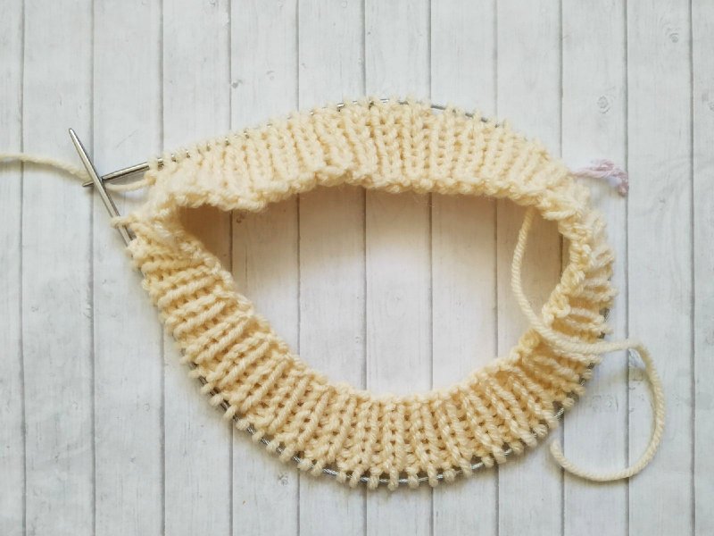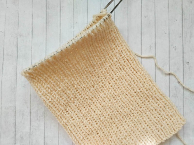 Так вяжем по кругу несколько рядов. Рисунок резинки выглядит так.