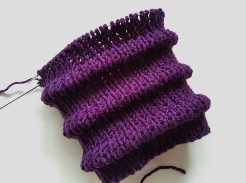 И вяжем дальше, чередуя 10 рядов простой резинки 1 на 1 и 1 ряд с изнанки, формируя дорожку поднятием лицевых петель.
