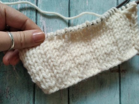 В следующем ряду будем вязать 4 лицевых и 1 изнаночную.