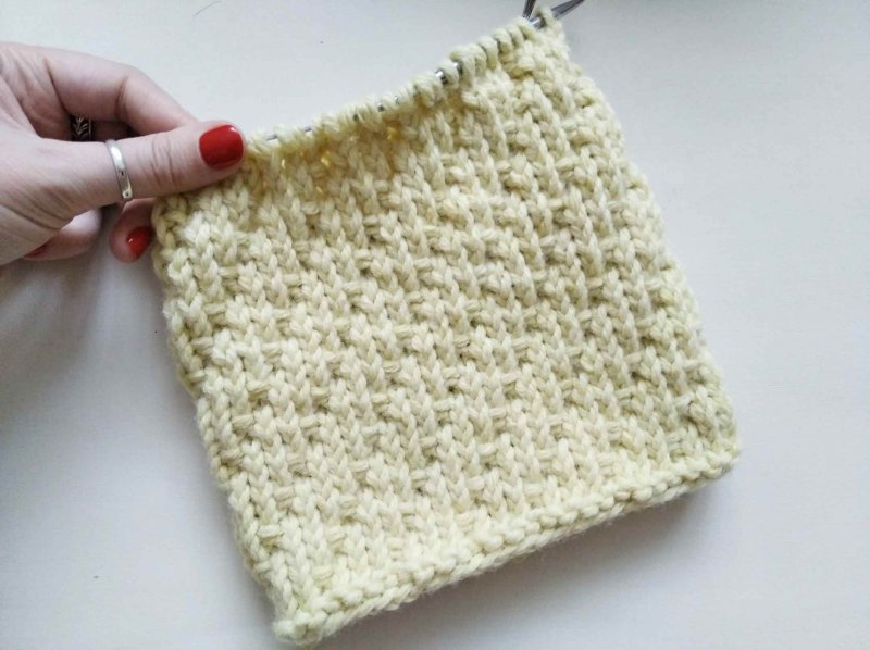 1 ряд: вяжите 3 лицевых и 1 изнаночную петлю. Повторите нужное количество раз до конца ряда.