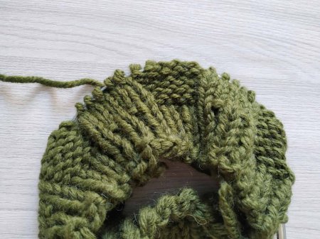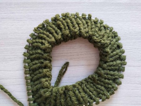 Замыкаем петли и вяжем по кругу 1 изн., 1 лиц. Таким образом провяжем резинку шапки. Вязать нужно до необходимой высоты.