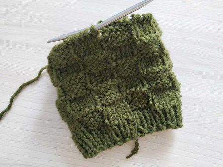 Теперь переходим к основному узору. Он очень простой. Провязываем 5 лиц, 5 изн. Так чередуем весь ряд. В следующих 4 рядах вяжем по рисунку. В лиц петли провязываем лиц., в изн вяжем изн.