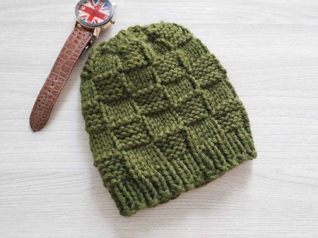Уровень сложно выполнения такой шапки низкий. Поэтому можно смело браться за ее вязание даже если нет большого опыта в вязании спицами. Кстати, такая шапка подойдет и для женщины, достаточно сделать резинку выше и подобрать другой цвет нити.