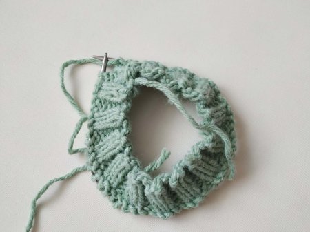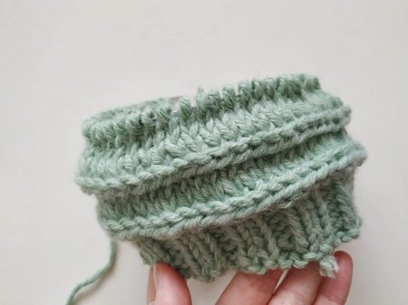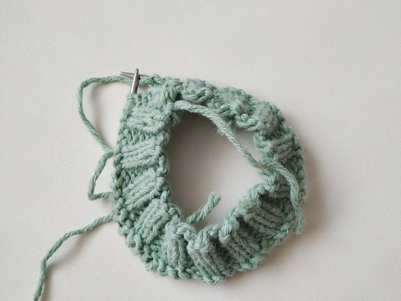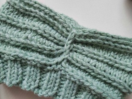 Далее нужно просто так чередовать 4 ряда. 1 ряд с косичкой и 3 лицевой гладью.