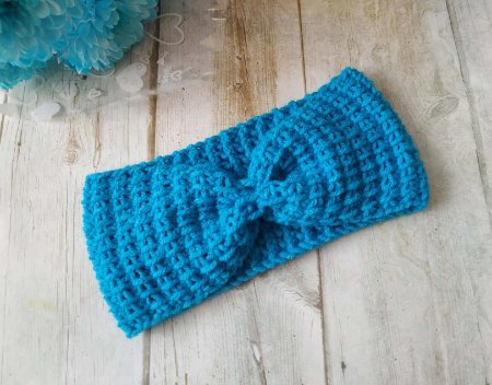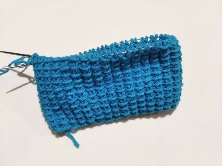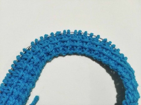 Сначала вяжем первый ряд, потом второй, затем снова первый, второй и так далее, пока повязка не наберет нужную ширину.