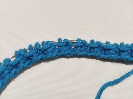 Закрываем петельки. Лучше всего это делать эластичным способом, чтобы повязка хорошо тянулась.