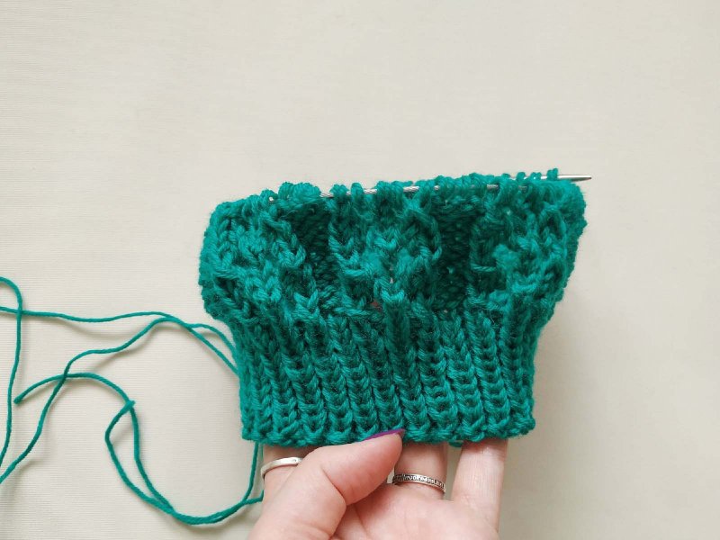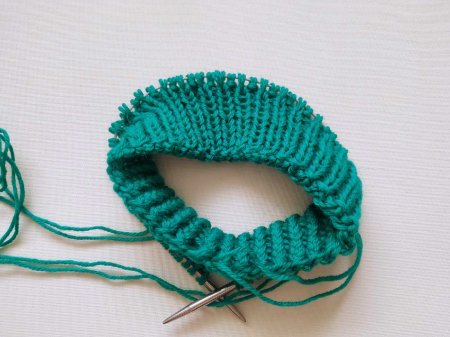 Вязать столько рядов сколько нужно для желаемой высоты резинки.