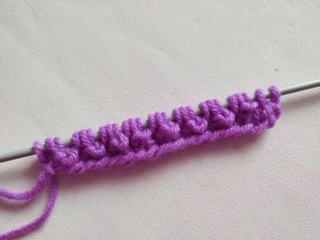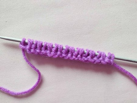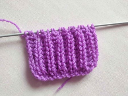 Дальше мы просто повторяем этот ряд. То есть каждый раз мы повторяем один и тот же ряд. В итоге будет получаться вот такой узор английской резинки. Он достаточно пышный и плотный.