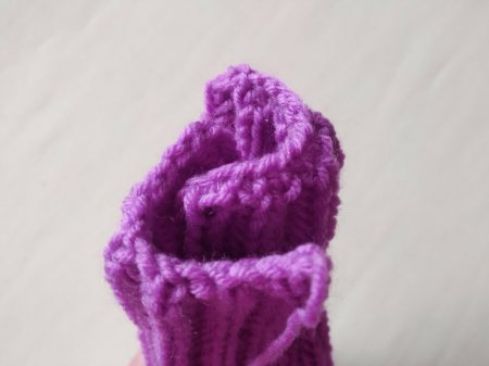 Иголкой для трикотажа сшиваем эти концы сразу все вместе. В конце нитку закрепляем двумя узелками. Обрезаем хвостик и выворачиваем изделие.