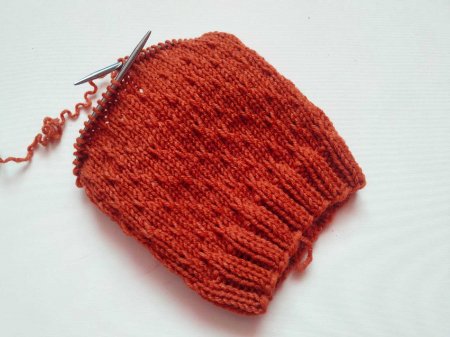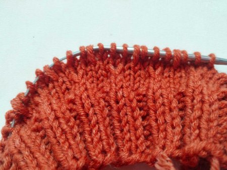 На этом этапе узор почти незаметен. Но когда мы провяжем несколько таких раппортов, узор будет виден.
