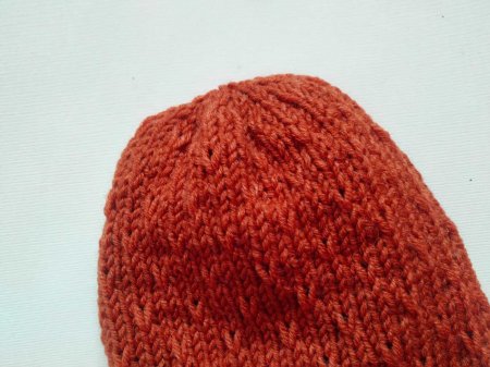 Во втором ряду мы петли убавлять не будем. А дальше начинаем повторять эти 2 ряда, пока не закроем петельки и не сформируется макушка у шапки.