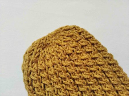 Дальше эти ряды просто будем повторять, пока не свяжем шапку нужной высоты. А после этого начнем делать убавки.