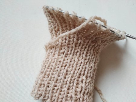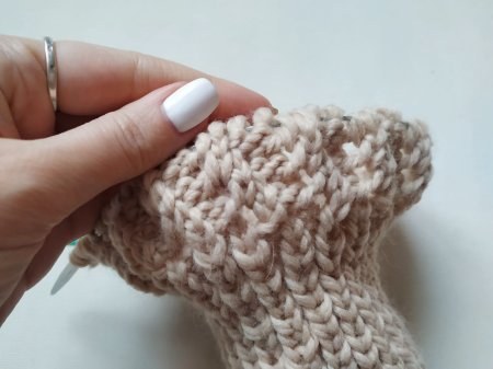 На убавление уйдет немного рядов. В 1 ряду вяжем просто 1 лицевую и 2 изнаночных. То есть из протяжки больше не провязываем.
