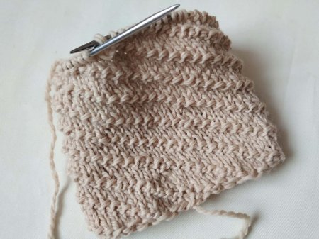 Далее вязание очень простое. Вяжем 4 лицевые петли и 2 изнаночные. Это раппорт ряда. Значит, далее до самого конца нужно просто повторять. Не забываем поставить маркер на начало вязания, чтобы не путаться.