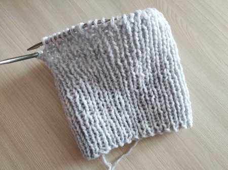 Далее вяжем самую обычную резинку один на один, провязывая изнаночные петли за заднюю полупетлю. Так резинка получится одинаковой с обеих сторон, и можно будет делать отворот, если нужно.