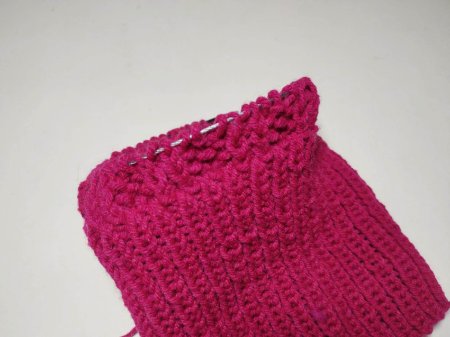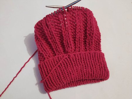 Высота резинки зависит от желания. Если нужен отворот, то вяжем резинкой, учитывая его высоту. При вязании резинки, если будет отворот, то обязательно изн. петли провязываем только за задние стенки.