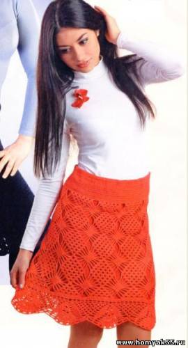 Размер: 44 Вам потребуется: пряжа Alpina Anabel красного цвета (120м/50г, 100% хлопок) - 400г , крючки нескольких размеров - №2,5, №3 и №4, эластичная тесьма или широкая резинка для пояса.