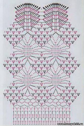 87-й ряд: привяжите к нижнему ряду фиолетовую нить и вяжите схеме по 88-й ряд включительно. Закончить вязание.