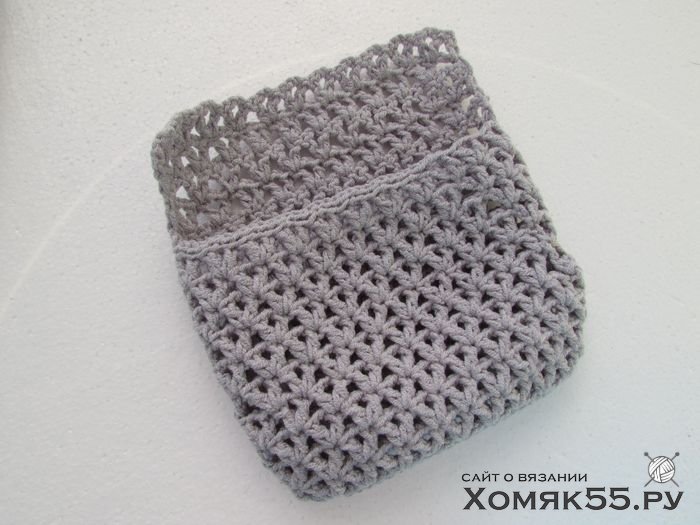 Провязываем 1 ряд столбиков без накида по обеим сторонам цепочки, на концах провязывая по 4 столбика с накидом в одну петлю, чтобы дно сумочки не свернулось.