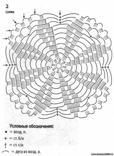Крючком наберите 22 ВП и вяжите по схеме. Через 40 см закройте петли.